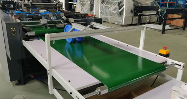Část krmení papíru je řízena servomotorem. Hromada papíru se občas pohybuje s podporou papíru. Pás má dlouhou životnost a může postupně oddělit a přepravovat papírové výrobky na část krmení papíru stabilním a řádným způsobem.
