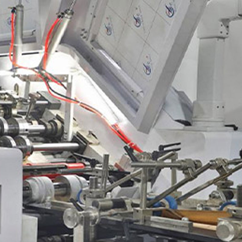 Stroj automaticky aplikuje lepidlo na dno papírového sáčku, zavře dno a složí dno, aby zajistil jednotný standard dna papírového sáčku.