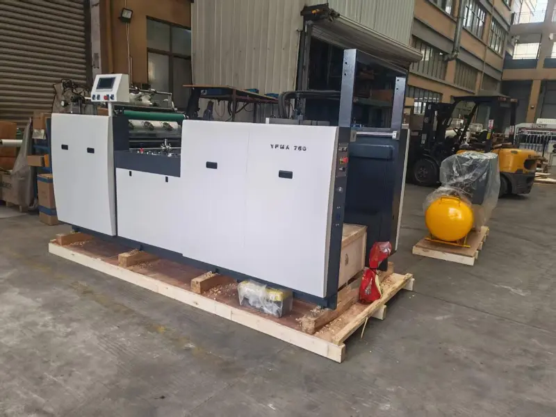 Balíme YFMA-760Automatický laminovací stroj pro předběžné potahování, Nakonec bude zabaleno do dřevěné přepravky.